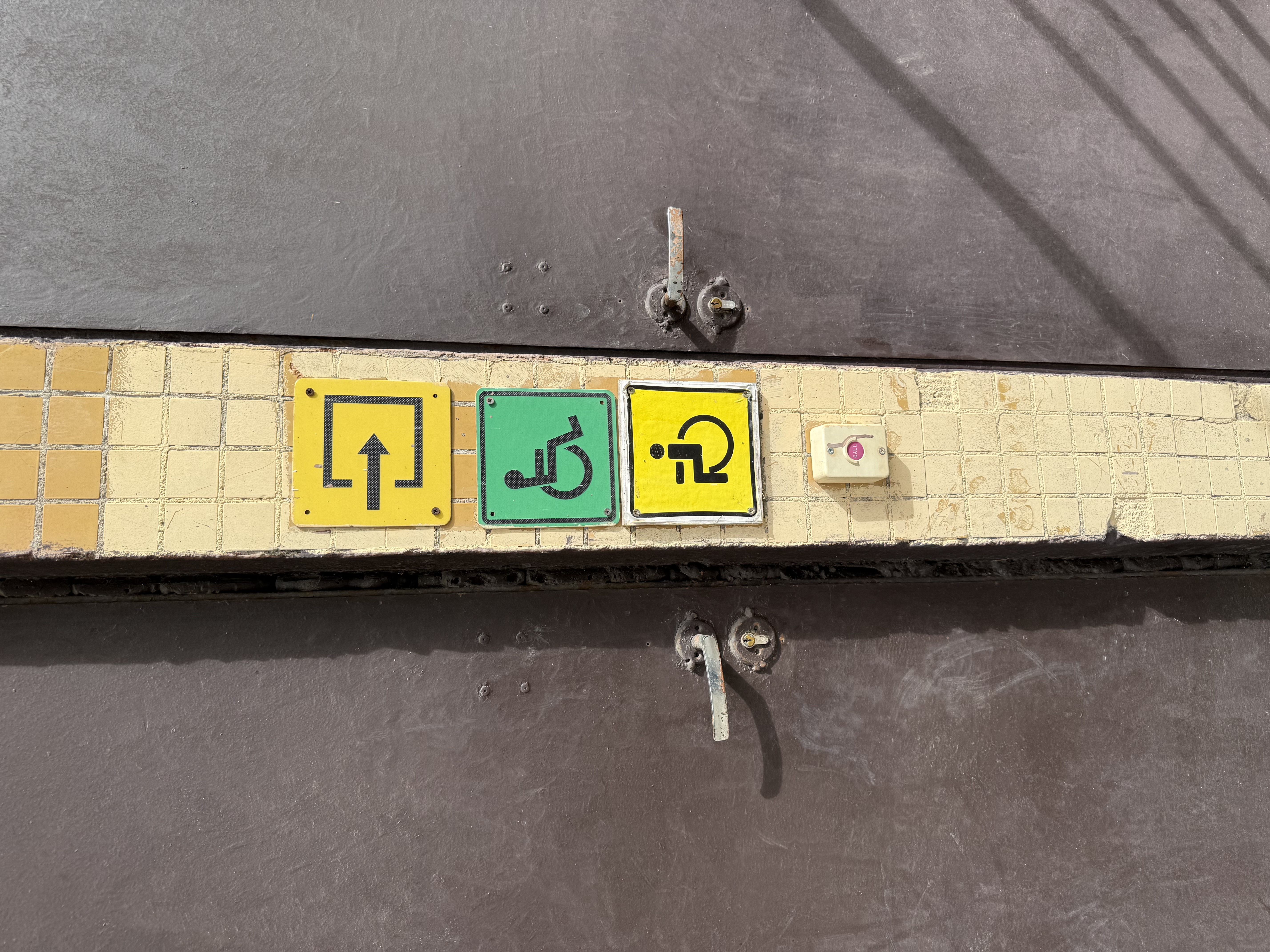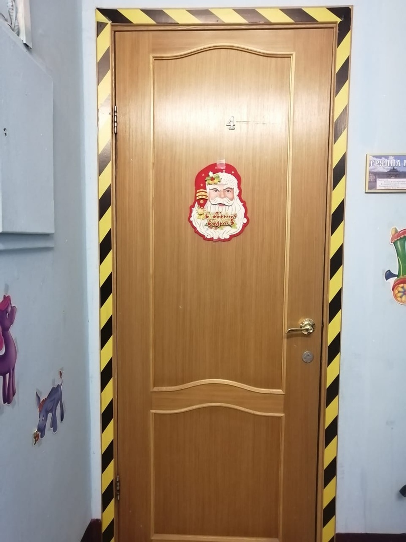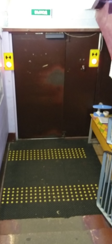 Нанесена цветовая разметка на дверях для инвалидов по зрению.
