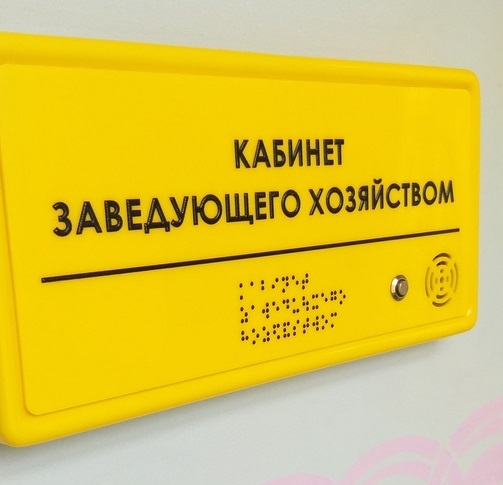 Информационные таблички у кабинетов администрации продублированы рельефно-точечным шрифтом Брайля.
